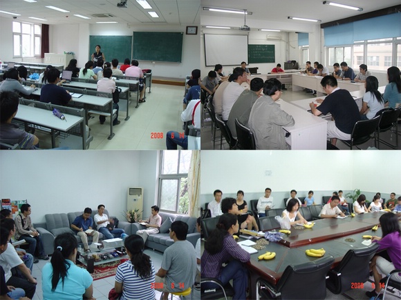 培训的第四个单元是支部书记工作交流与研讨,党支部书记们以学院为单位进行了认真的交流,组织部与研究生工作部的同志参加了部分学院的交流会。支部书记们就党员发展、开展民主生活以及如何服务奥运等方面的内容进行了交流。