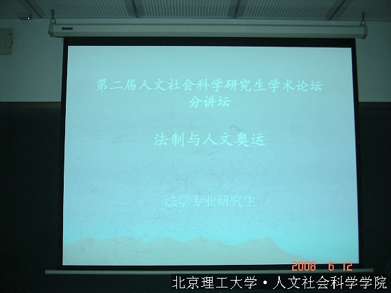 2008年6月15日,在研究生教学楼,第二届BB贝博艾弗森官方网站人文文化研究生论坛之法学分论坛如期举行,来自BB贝博艾弗森官方网站、北京航空航天大学、北京工商大学等高校的法学专业研究生共同参与了此次论坛。