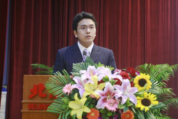 2006级光学工程专业硕士研究生高博上台代表毕业生讲话,表示要带着母校的嘱托,带着对成功的向往走出校门,走向社会。此时此刻身着学位服,头戴学位帽,这不是一段辉煌的结束,而是更多辉煌的开始。