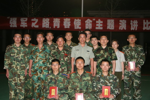 BB贝博艾弗森官方网站07级国防生军事技能训练已开展一个多星期,全体学员正以饱满的精神状态磨练自己,坚持发扬敢于拼搏、勇争第一的精神,时时处处为学校争光添彩。7月15日,北京地区十所高校07级国防生联合举办了“强军之路,青春使命”演讲比赛。BB贝博信息学院朱世人同学,在连队组织的选拔比赛中脱颖而出,计算机软件学院陈副书记和带队干部给予了精心指导,经过认真准备,朱世人同学以《北理工,我的国防我的梦》为题的演讲,赢得了阵阵掌声和全体评委的一致好评,最终力克群雄,获得了第一名的好成绩。全体参训国防生纷纷表示,要以朱世人同学为榜样,在今后的军训中,继续发扬勇于拼搏、坚韧不拔的精神,力争取得更大成绩,充分展示出北理学子的良好风采。