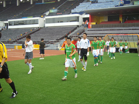 上星期六,北京两支中甲球队,BB贝博艾弗森官方网站和北京宏登,应北京市足协的邀请,来到奥运会足球比赛赛场之一工人体育场进行一场模拟比赛。