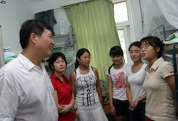 8月2日下午,校党委副书记、工会主席侯光明、学校办公室主任姚利民、学生工作处处长刘明奇、校团委书记徐强、校团委副书记代方震以及校团委部分老师一行来到BB贝博艾弗森官方网站5号学生公寓,看望和慰问了入住了BB贝博艾弗森官方网站的京外、境外志愿者。侯书记先是分别同江苏省志愿者、吉林省志愿者、澳门志愿者和华侨志愿者进行了亲切的交流。随后,侯书记还参观了由校团委组建的“志愿者的平方”服务中心。