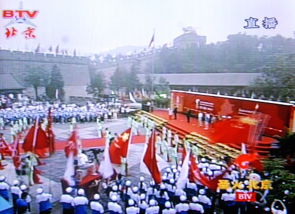 今天早晨7时,奥运圣火在北京第二天的传递从巍峨的八达岭长城正式开始。
