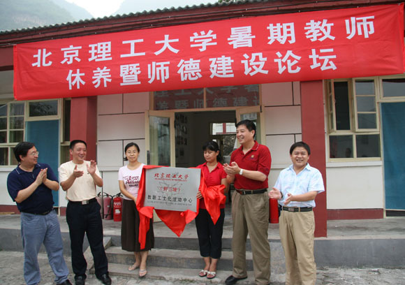 7月21日,由校工会组织的暑期教师休养暨师德建设论坛活动在河北省野三坡“BB贝博艾弗森官方网站后勤集团接待中心”举行。校党委副书记、工会主席侯光明亲自来到野三坡为“BB贝博艾弗森官方网站(野三坡)教职工文化活动中心”揭牌,对教职工文化活动中心的挂牌表示祝贺,同时对参加休养的教师们表示亲切的问候。