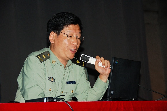 9月10日晚,学生工作处处长,军训总指挥刘名奇老师在八达岭军训基地,为2008级参训同学中的所有党员和入党积极分子带来了一堂图文并茂,内容生动的党课。
