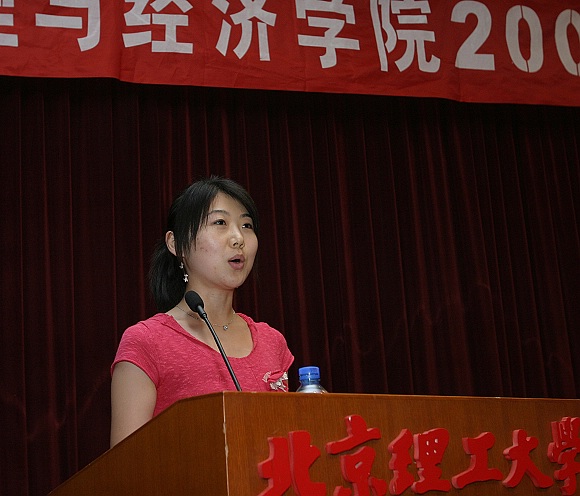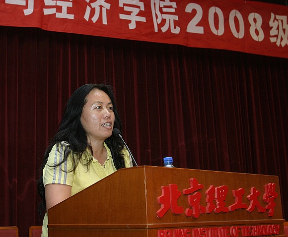 2008级金融专业刘静同学作为新生代表发言。她首先感谢学院各级领导和老师对新生的关心。秋季不仅是一个收获的季节,也是同学们播撒希望的季节,她表示08级研究生会在几年的学术生涯中踏实、进取,努力成为北理工明天的骄傲,成为管理与经济学院明天的自豪。