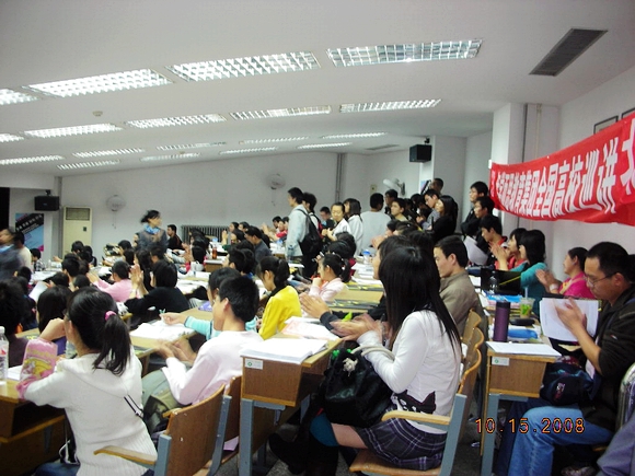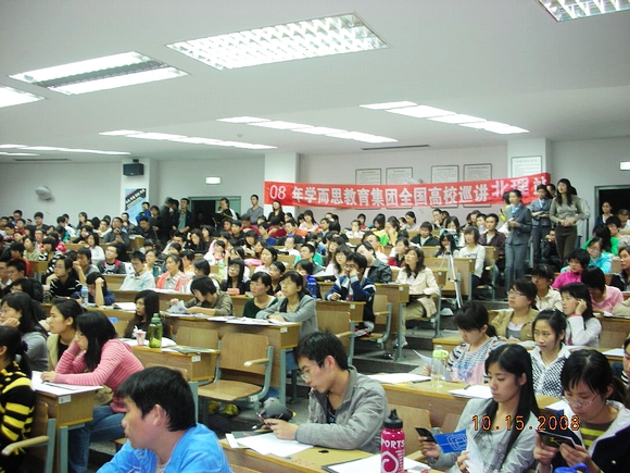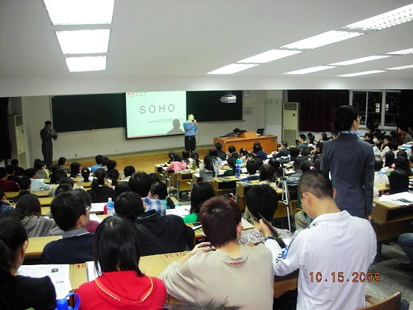 2008年10月15日晚上7时,学而思教育集团招聘宣讲会在BB贝博中心教学楼231正式拉开序幕。此次活动由人文学院机遇发展协会承办。当天晚上300余人的教室座无虚席,门口也站满了人,场面十分热烈。这次活动得到了学校同学很大的关注和支持。大家都对这场宣讲会充满了兴趣和热情。