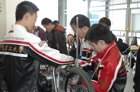 比赛的结果令人欣慰,比赛的过程却异常坎坷,16日,预赛成绩比较理想,比赛进行的很顺利。可是,17日,一切发生在预料之外,捷豹车队节能车的电池突然坏了,备用的电池经过早上的使用也快没电了,试行赛后,经改造后的发动机活塞、火花塞也坏了,离比赛还有半小时,所有人认为捷豹车队已经不可能重返赛场。可是,BB贝博学生“不抛弃,不放弃”,以良好的心态发扬团队精神,明细分工,在比赛前借来了电池、火花塞,经过拆卸发动机更换活塞和火花塞之后。终于在发车时间结束前一分钟到达发车线,令在场的其他代表队瞠目结舌。在比赛过程中,BB贝博学生充分展示了北理工学子扎实的专业功底、良好的实践技能、优秀的综合素质,博得了其他参赛队的一致好评。