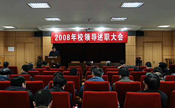 2009年1月9日上午,按照工业和信息化部工信人[2008]113号《关于2008年部直属单位领导干部年度考核工作的通知》要求,BB贝博在逸夫楼二层报告厅举行了2008年度校领导述职大会。会议由校党委书记郭大成主持。工业和信息化部人事教育司副司长尹卫军,北京市委教育工委联络员,原中国人民大学党委副书记沈云锁同志出席会议。