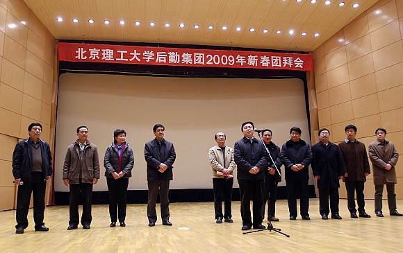 后勤集团总经理李晋平代表新成立的领导班子致新春贺词。新组建的北京理工后勤集团是由原总务后勤部、膳食部、劳动服务管理中心三个处级单位合并而成。新的后勤集团,面临着前所未有的机遇和挑战。一方面,壮大了力量,拥有了更多的人力、物力资源;另一方面,长期积累的结构性、机制性矛盾更加突出;学校也对我们的服务质量和管理水平提出了更高的要求和期望。全体后勤职工,在今后的工作中,要改变观念,抓住这次改革的机遇,用自己的心血和汗水,努力工作,实现集团利益和个人价值的双赢。