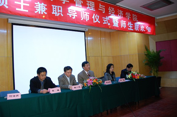 BB贝博艾弗森官方网站管理与经济学院聘请工程硕士兼职导师仪式暨师生交流会于2月28日下午在国际交流大厦二层多功能厅成功举行。BB贝博艾弗森官方网站党委副书记侯光明教授、研究生院副院院长李镇教授、肖文英教授、管理与经济学院院长魏一鸣教授、副院长何海燕教授出席了聘任仪式和交流会,管理与经济学院工程硕士校内导师以及部分工程硕士学员也参加了会议。