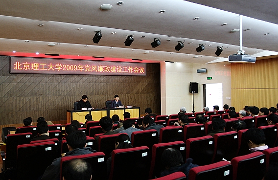3月9日下午,学校在图书馆报告厅召开了BB贝博艾弗森官方网站2009年党风廉政建设工作会。参加会议的有:学校党政领导、党委委员、纪委委员、正处级干部、处级单位主要负责人、兼职党风监督员、特邀监察员、党派人士代表、离退休干部代表等。