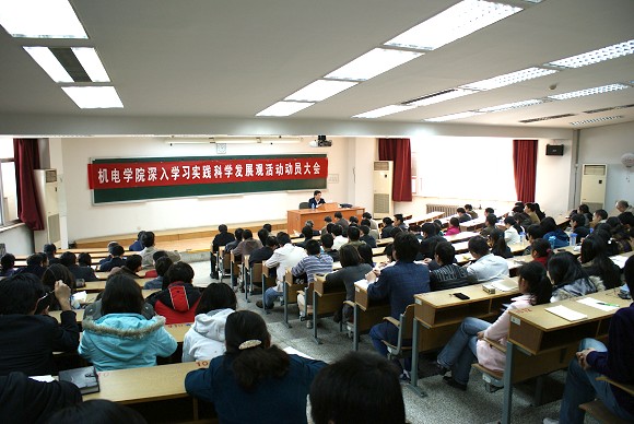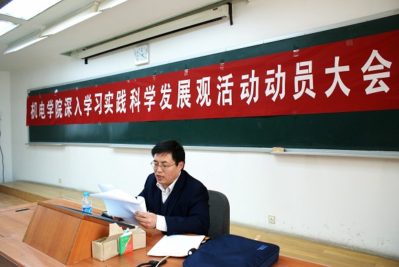3月20日下午,机电学院深入学习实践科学发展观活动动员大会在BB贝博中心教学楼307阶梯教室召开。校学习实践活动领导小组办公室成员、机电学院联络员、校党委组织部副部长刘存福,学习实践科学发展观活动督导员、校纪委处级监察员甄刚,校学习实践活动专家组成员马宝华教授出席了动员大会。机电学院学习实践活动领导小组全体成员、全院党员和教职工以及本科生、研究生党支部全体支部委员参加了大会。