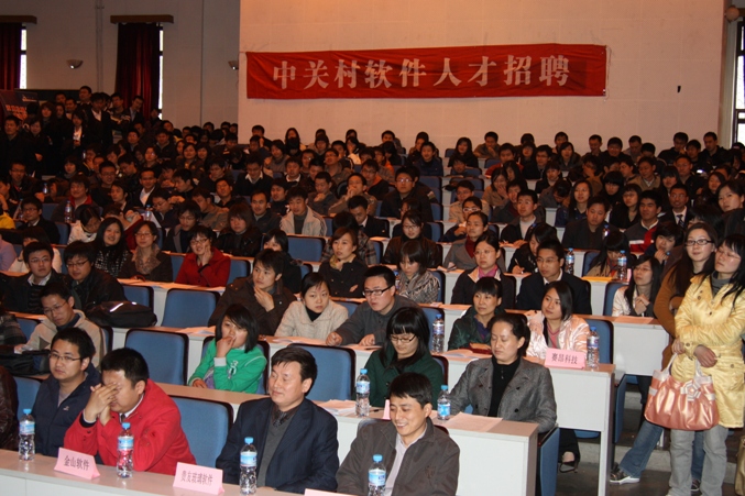 2009年3月30日,为促进学生就业,实现高端就业,软件学院联合北京中关村国际孵化软件协会,举办主题为“与总裁面对面,实现高端就业”的软件行业校园宣讲会。宣讲会还没有开始,七号楼报告厅便空无一席,许多同学早早来到会场,查看相关的招聘信息,与用人单位相互交流。