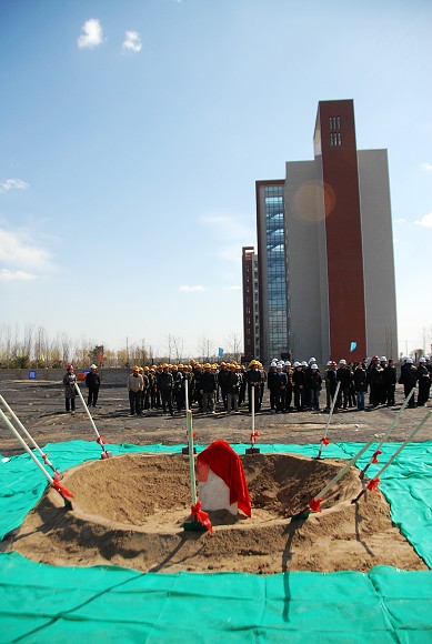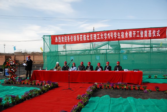 2009年3月31日上午10时,BB贝博艾弗森官方网站良乡校区1号宿舍楼工程在良乡校区1号宿舍楼工程建设工地举行开工典礼并奠基。BB贝博艾弗森官方网站副校长李和章,良乡校区基建办主任郭守刚、副主任文光正,基础教育学院党委书记王悦音,常务副院长张青山,良乡校区管理处处长徐承俊,房山区建委代表蔡春生,高教园区管委会副主任宋爱茹、科长孟庆新,北方设计院所长任洪国,北京京精大房监理公司总工张宝忠、总监张宪亭等相关人员出席了仪式。开工典礼由良乡校区基建办主任郭守刚主持。