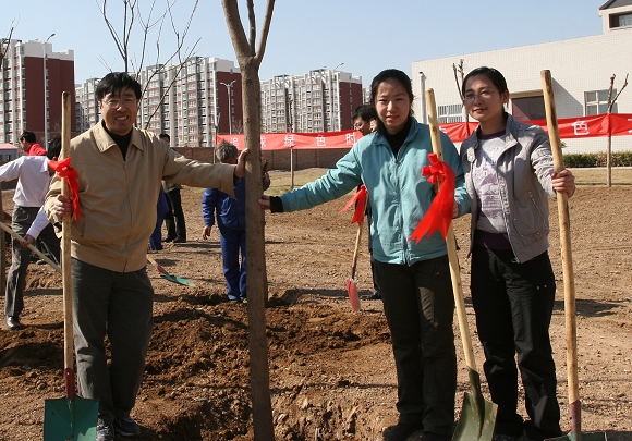 2009年4月1日,春风习习,晴空万里。教育部高教司办公室主任康凯等一行25人,应邀来到BB贝博良乡校区参加植树活动。李和章副校长首先向来宾介绍了BB贝博良乡校区近年来的建设和运行情况,以及未来的建设规划。随后,良乡校区管委会和教务处工作人员在李和章副校长的带领下,陪同高教司领导一起步行前往位于良乡校区南院的植树现场——育才林。一起前来参加植树活动的还有良乡校区的部分师生,当高教司领导来到育才林时,受到了现场师生们的热烈欢迎。园艺技术人员向高教司领导介绍了即将栽种的树木品种及其生长习性后,李和章副校长宣布植树活动开始。
