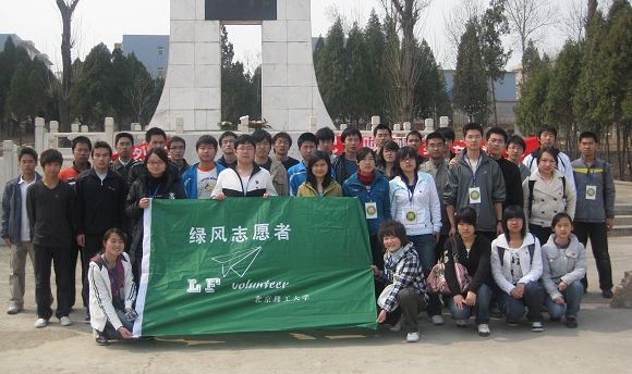 2009年4月3日,时值清明祭扫之际,机械与车辆学院绿风志愿者协会组织举办了“向逝去的他们致敬”扫墓活动,组织同学前往BB贝博良乡校区附近的无名烈士墓园进行祭扫活动,以此来重温历史,了解革命烈士的英雄事迹,祭奠为祖国建设付出生命的烈士们,同时回顾祖国建设六十年来的风雨历程,引导大学生弘扬爱国主义精神,加强爱国主义教育,增进爱国主义情感。