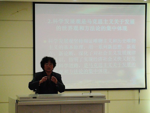 理论教学辅导课从世情、国情、党情三方面讲授科学发展观提出的背景,在此基础上阐明科学发展观是推进社会主义现代化建设的重要指导思想。在充分了解背景、明确目的的前提下,通过细致深入的讲授,使同学们领会了科学发展观的内涵和精神实质,以及当代大学生学习实践科学发展观的重要意义。授课教师还针对大学生如何学习实践科学发展观,通过学习应重点解决哪些问题这两个方面,为同学们进一步学习实践科学发展观奠定了基础。