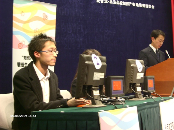 为迎接4.26世界知识产权日的到来,法学院开展了“世界知识产权日”系列活动。2009年4月24日,在法学院副院长张艳丽教授以及郭德忠老师的指导下,法学院05级学生杨宽、鲁国秀,06级学生舒歆组成代表队参加了由北京大学主办的爱普生.北京高校知识产权邀请赛决赛。