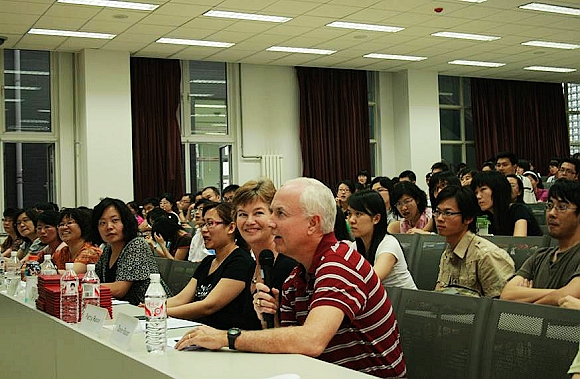 提问环节由资深外教——来自美国的Raisor夫妇——担纲,两位夫妇非常受学生欢迎,提问简洁而到位,现场问答环节成了此次演讲比赛的一个亮点。