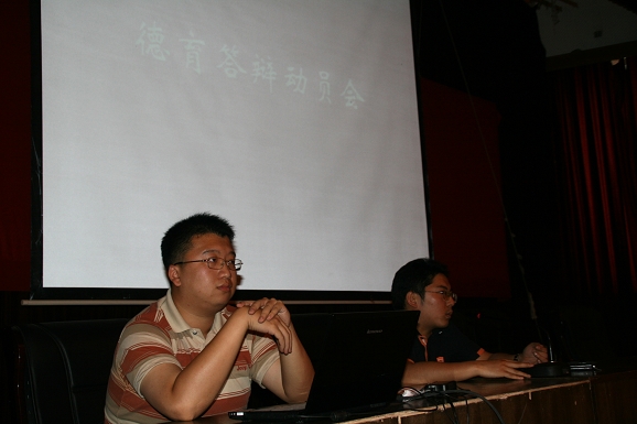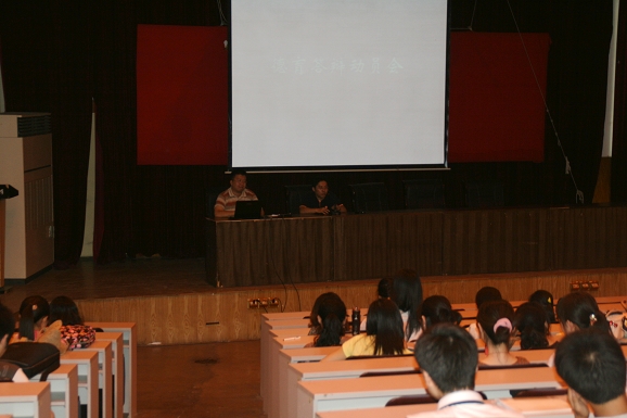2009年5月25日,生命学院按照学校规定,认真落实2009届本科毕业生德育答辩工作的相关要求,在七号楼报告厅举行了2005级毕业生德育答辩动员大会,生命学院分团委书记王征老师,分团委副书记、2005级辅导员陈宇老师出席了大会。