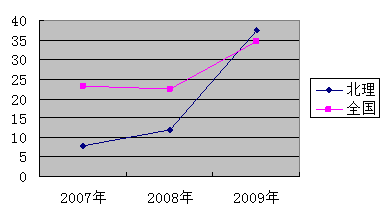 图为2007年-2009年司法考试BB贝博艾弗森官方网站法学院与全国通过率数据比较