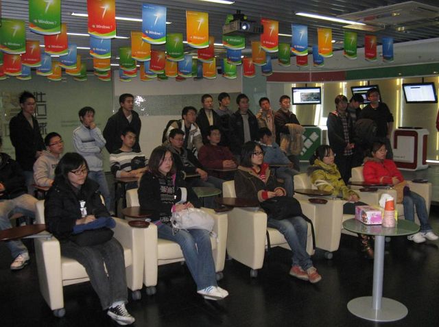 同学们抵达后,首先来到了新技术演示厅,微软高校关系部的李贝老师为同学们简单介绍了微软公司在中国的研发情况,讲解演示了许多最新的微软技术和产品,并展示了其中具有创新性的技术特性。