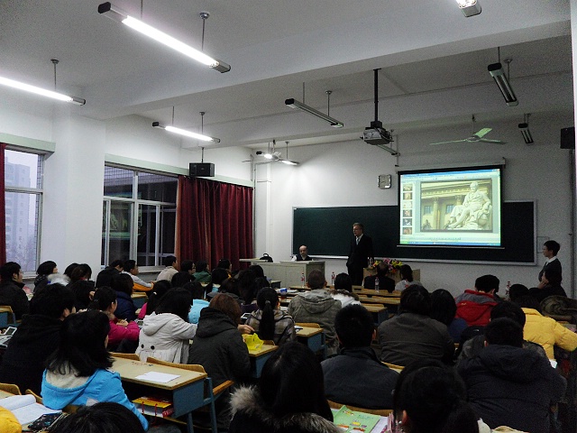 国际交流合作处处长王庆林教授在报告会前致词欢迎冯•马丁先生的到来,并高度评价了“走向世界”主题系列活动及举办德国文化节活动的重要意义。