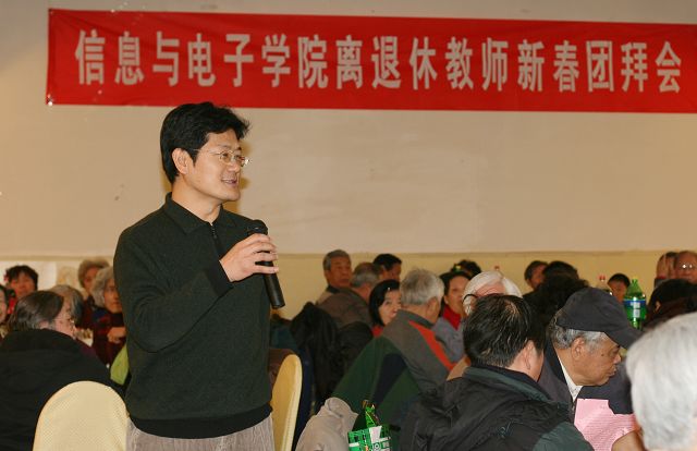 信息学院党委书记张笈主持团拜会,对离退休教师多年来对学院发展做出的贡献表示衷心的感谢并致以新春的祝福。