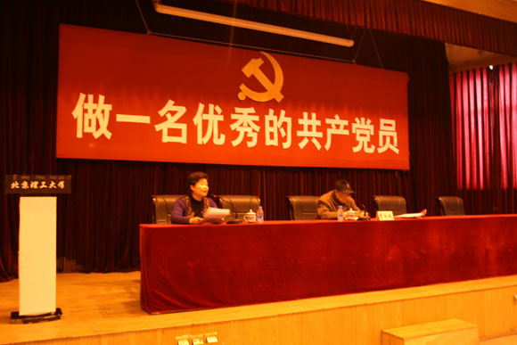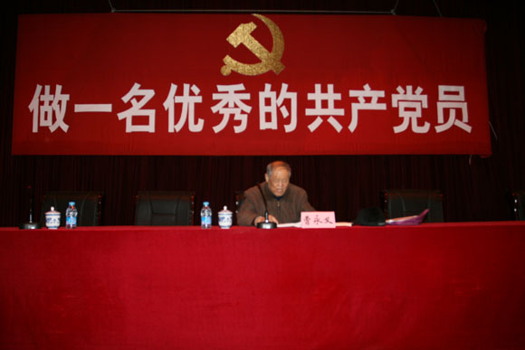 曹老从三个方面给全体党员和入党积极分子上了一堂内容丰富、事例鲜活、说服力强、感人至深而又不乏生动有趣的党课。第一部分先从党的性质、历史任务、社会主义初级阶段历史使命讲起,分析了学校承担的历史任务,社会和经济发展的新形势对学校的要求,后勤在改革发展中的使命等。第二部分主要讲:“一个一”,牢记我是一名共产党员;“两个三”,即公正硬、传帮带;“四个五”,“见名利就让,见困难就上,见先进就学,见后进就帮”。 第三部分主要讲,怎样落实成为一名优秀的共产党员。一是要靠共产党员的自觉,后勤人要做到嘴勤、腿勤、眼勤,要有大局意识,二是要靠制度保障,制定符合实际、行之有效的制度。针对入党积极分子曹老还着重谈了三点:1.共产党是什么样的党;2.怎样争取入党;3.如何争取入党。