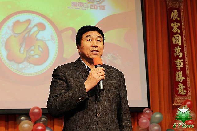 1月26日下午机关党委、机关工会联合会在中教一层报告厅举办新春团拜会,郭大成书记、胡海岩校长、侯光明副书记、赵平副校长、赵显利副校长出席了本次大会。在悠扬的音乐声中,萨仁、王民两位主持人拉开了本次团拜会的序幕。