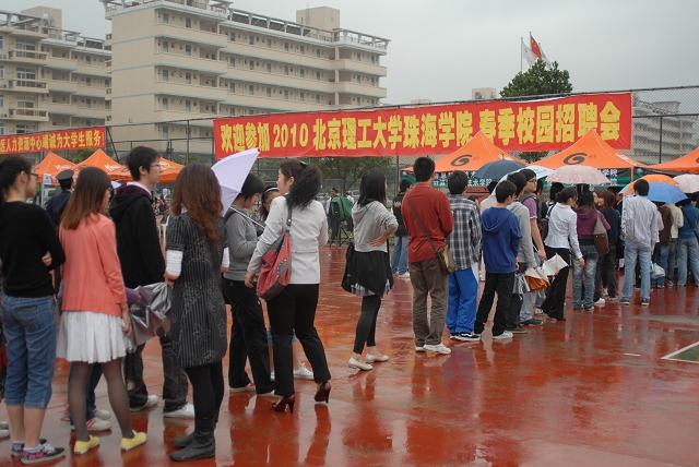 4月10日,BB贝博珠海学院2010年春季校园招聘会在珠海学院体育运动场拉开帷幕。本次校园招聘会是由珠海市香洲区人力资源中心和BB贝博艾弗森官方网站珠海学院共同举办,共吸引了包括澳国旅、银通新能源、乐通化工、人人乐商业、天威飞马、百胜餐饮(深圳)有限公司、台山市台澳铝业、中国土木工程集团珠海分公司、中德安联等来自珠三角地区约100家用人单位参会,主要集中在IT、机械、化工、金融、酒店、零售等,提供软件研发、程序员、工程师、生产技术员、市场营销、会计、行政人员、客服、美工设计等约370个职位,招聘岗位数约2400人,共吸引包括北理工珠海学院、北师大珠海分校、北师大-浸会联合国际学院、暨大等珠海高校应届毕业生约5000人参加。