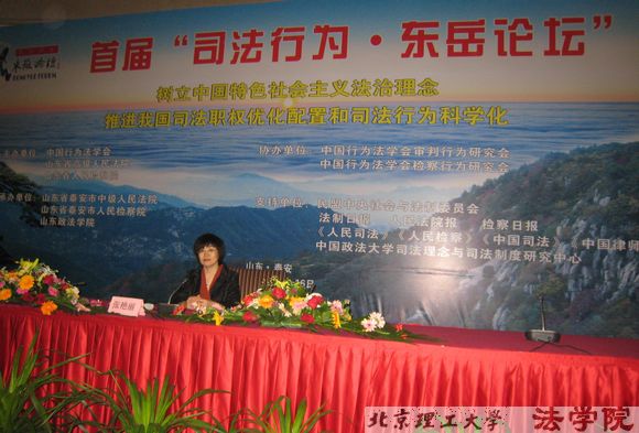5月15至16日,中国行为法学会、山东省高级人民法院、山东省人民检察院共同主办,泰安市中级人民法院、泰安市人民检察院共同承办了“司法行为.东岳论坛”。全国各级人民法院、人民检察院、司法部、各大专院校等300多名著名法律专家和学者参加了此次盛会。中国行为法学会会长刘家琛、全国政协社会与法制委员会主任、司法部原部长张福森、最高人民法院副院长江必新、北京师范大学教授高铭暄、中国政法大学教授陈光中、何秉松、杨荣馨教授等,就会议有关专题做了演讲。BB贝博艾弗森官方网站法学院副院长张艳丽教授应大会邀请参加了此次论坛,并作了主题发言。