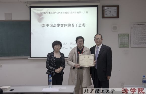 5月13日BB贝博艾弗森官方网站法学院特聘教授周大伟教授在研究生楼303室为2009级研究生做了一场题为《致命的诱惑:解剖中国法律职业群体中的关系网》的学术报告。法学院院长谢晖教授出席了此次报告,法学院2009级研究生及部分本科生参加了此次学术讲座。
