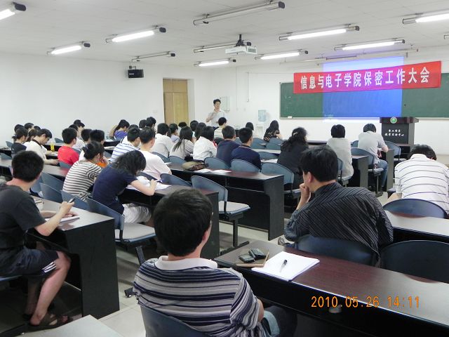 为提高教师保密意识,规范学院保密管理工作,信息与电子学院于5月26日下午在4号楼多媒体教师召开保密工作大会, 保密处副处长郑重、保密处鄂梅老师应邀参加大会并作保密知识专题讲座。学院保密干事、技术支持、各研究所保密联络员及涉密教师和学生70余人参加了大会。