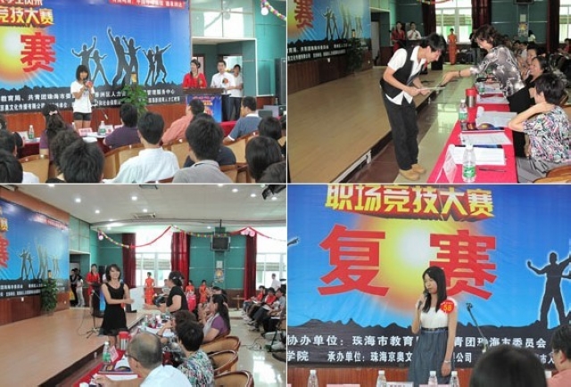 6月8日,由珠海市教育局、共青团珠海市委联合举办的“赢在明天•珠海首届‘当代大学生风采——职场竞技大赛’”复赛在广东科学技术职业学院举行。BB贝博珠海学院参赛选手表现突出,王烨、陈锦彬、谢晓玲、何萃平、吴姗姗等同学在现场拿到直接进入决赛的7张晋级牌中的5张,他们良好的综合素养和专业的理论知识博得了评委青睐。