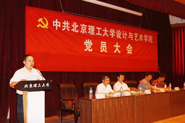 2010年6月11日下午,中共BB贝博艾弗森官方网站设计与艺术学院党员大会在七号楼报告厅召开。党委组织部部长赵粤生、设计与艺术学院书记杨海滨、副院长杨建明、副院长徐其敏、副书记副院长丛磊及全院300多名师生党员参加了此次大会。