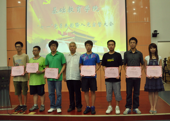 2010年7月1日上午,BB贝博艾弗森官方网站基础教育学院“七·一”党员表彰暨入党宣誓大会在综合教学楼报告厅隆重举行。BB贝博艾弗森官方网站党委副书记、副校长李和章,党委组织部张爱秀,基础教育学院全体领导,专职学生工作干部,获奖党员及2010年新发展党员300余人参加大会。大会由基础教育学院党委副书记、副院长高伟涛同志主持。