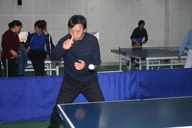 参赛队员们各显风采,上旋球、侧上旋球、下旋球、侧下旋球、搓球、拉球、扣球、切球,大家全力以赴、互不相让,选手们使出浑身解数,一个个漂亮发球动作总能引起观众助威呐喊,一个个精湛的扣杀技术博得现场的所有人的连连鼓掌、阵阵喝彩,活动室里充满了因为运动而散发出来的热情,比赛过程高潮迭起,生机勃勃!