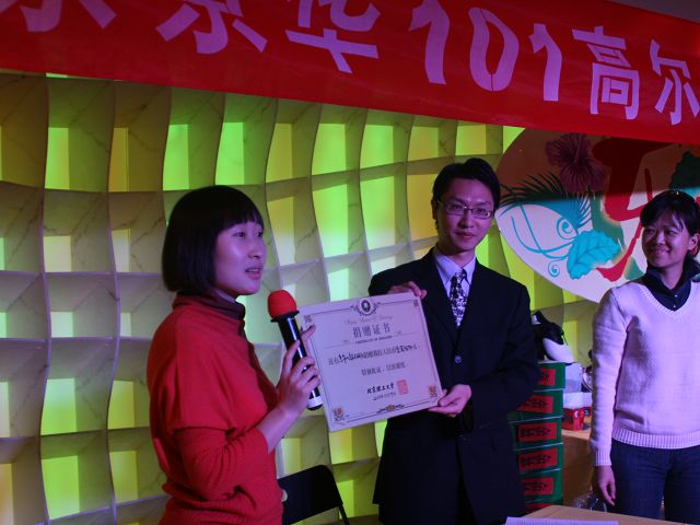 由在京台商组成的京华101高尔夫球队为帮助北理工理学院大学生顺利完成学业而设立的“京华101就业领航”助学金,2010年11月7日,在北京朝阳区麦乐迪富丽店举行签约及颁发仪式。京华101高尔夫球队在京台商队员、BB贝博艾弗森官方网站理学院团委书记王晶晶老师、就业办公室张锋老师及获得助学金的三位学生代表参加了仪式。签约及颁发仪式由京华101高尔夫球队总务兼慈善委员邹慧文女士、副总干事兼慈善委员林太一先生主持。