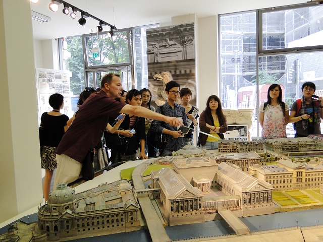 这次的游学活动为期一个月,主要内容为课程研修、企业调研和文化经典考察。每周四天课程,内容涉猎德国历史、社会与文化,每天处理一个主题,如柏林印象、柏林方言、德国幽默、幸福观、艺术观、环保、语言、外国人、分裂历史等等。很多主题同学们在国内或多或少地都有些了解,最令大家感到骄傲的就是在国内学过的东西在国情方面和交流中都发挥了作用,授课教师常常惊叹外国学生能拥有这么多的德国国情和德语知识。德语课堂既印证并温习了很多同学们已经学过的知识,同时也为大家提供了很多不一样的视角和思考方式,在许多问题上使大家深受启发。
