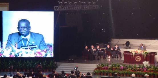 随后,五位中外大学校长作为特邀嘉宾代表全球五大洲做了主旨发言。拉各斯大学校长萧佛鲁维教授作为五名特邀嘉宾之一代表非洲做了题为“在非洲孔子学院建设的新思路”的报告。报告中,萧佛鲁维校长介绍了拉各斯大学孔子学院的办学经验。萧佛鲁维教授的报告谦虚而充实,演示文稿精彩纷呈,报告提及孔子学院与尼日利亚联邦政府及拉各斯大学校方关系之融洽令人鼓舞,多种多样的文化交流活动引人入胜……他对国家汉办的指导与支持、BB贝博艾弗森官方网站的大力支持及孔子学院喻佑斌院长的工作成绩表示了诚挚的感谢。萧佛鲁维教授的发言令非洲代表感到振奋。