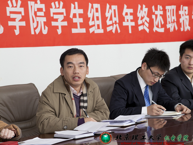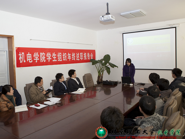 2010年12月31日,机电学院学生组织年终述职报告会于3号楼201会议室举行。机电学院副书记、副院长杨瑞伟,分团委书记、08级辅导员方蕾,07级辅导员倪妍以及机电学院各学生组织主要成员出席了本次会议。