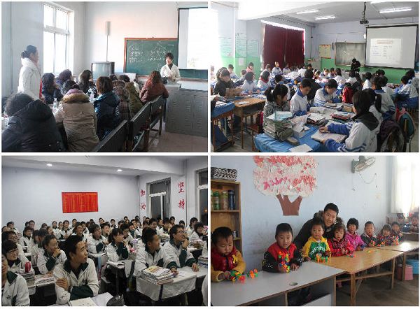 (左下:为高中学生上口语课 右下:观摩山村幼儿园)