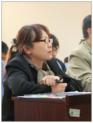 主持人进行了简短的活动介绍之后,答辩正式开始。各位同学精心准备了答辩的PPT,满怀感情的进行了展示。比较别开生面的一点就是会议进行的方式,可以看到会场前的的桌上放了一盒小纸条,每个纸条描述了一位同学的特征,由主持人抽取第一张纸条让大家猜来决定由谁来进行演讲,之后每位演讲的同学都由上一位演讲的同学来抽取,这种方式不仅活跃了气氛,使会议充满了有别于以往的趣味,也使得每个人都能听到他人对自己的评价,意义也十分难得。