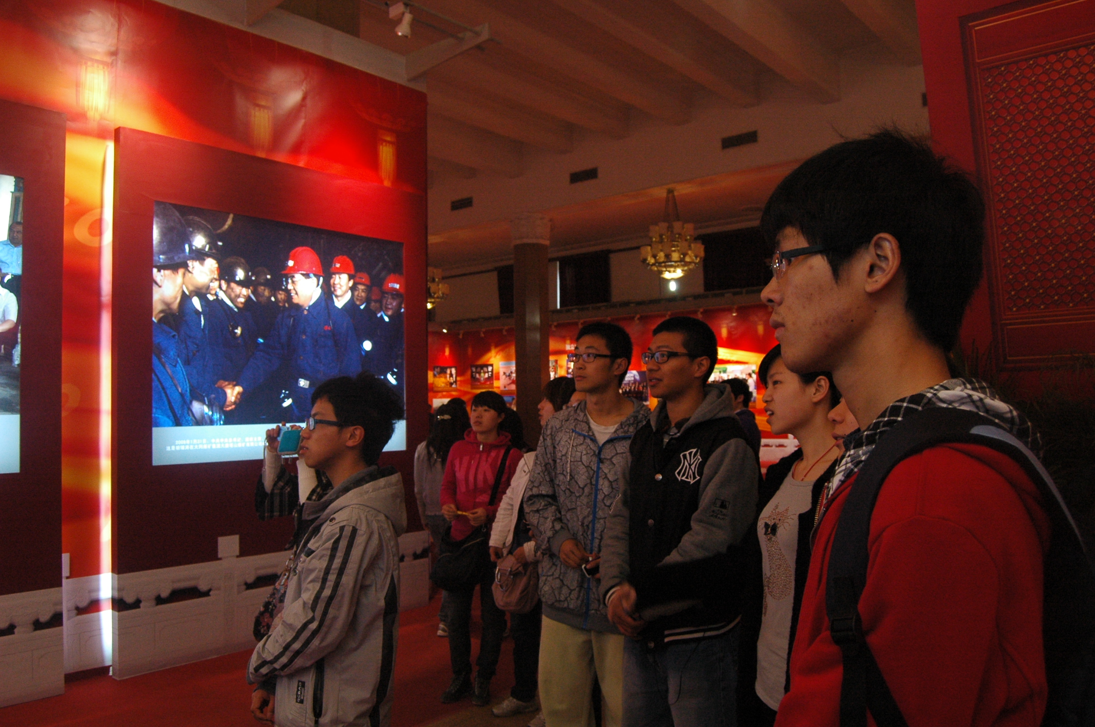 活动第一个环节是参观由中央宣传部和国家发展改革委主办,新华社、中国人民革命军事博物馆承办的《辉煌“十一五”》大型主题图片展览。《辉煌“十一五”》大型图片展生动形象地展示了“十一五”改革建设的辉煌历程,展示了社会生产力快速发展、综合国力大幅提升、人民生活明显改善、国际地位不断提高的巨大成就,展示了我们党团结带领各族人民在成功举办大事喜事、战胜困难风险中体现的伟大民族精神和时代精神。大家认真地参观每个部分,还不时向工作人员询问交流。此外,同学们还参观了中国人民革命军事博物馆内抗日战争馆、解放战争馆等馆的基本陈列,回顾了近代以来中国人民为实现民族复兴而进行的艰辛探索,特别是中国共产党带领全国各族人民走过的光辉历程,深入学习了解中国革命史,学习了解中国共产党在和平年代带领全国人民进行社会主义建设并取得的巨大成果。