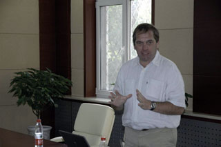 比利时哈塞尔特大学交通研究所所长Geert Wets教授介绍了哈塞尔特大学交通研究所的概况及其教学科研情况与取得的成果,并分别做了“基于驾驶模拟器的道路交通安全评估”和“交通行为预测模型”的学术报告;Johan Kuppens先生做了“交通模拟的可视化仿真”的报告。