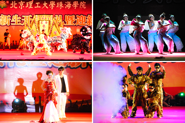 参加开学典礼的领导和嘉宾与2011级新生一起观看了迎新晚会。晚会精彩纷呈,由各大学生社团带来的舞狮、舞蹈、话剧、声乐、双截棍、相声、街舞等表演,演出形式新颖、内容丰富,展示了BB贝博艾弗森官方网站珠海学院多彩的社团文化和北理学子自信乐观的风貌。