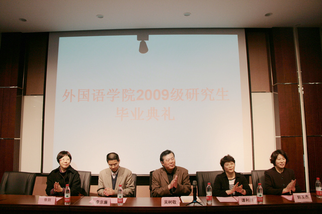 外国语学院党委书记吴树敬教授首先致辞。他首先向毕业生表达了祝贺之情,祝贺他们圆满的完成了研究生的学业,成为了一名合格的毕业生。他又提出,同学们毕业之后踏入的社会是一所更需要每位同学认真学习的大学,那里面有许多同学们在BB贝博艾弗森官方网站这所学校里所不曾学习到的知识,需要同学们认真从社会这所大学里汲取营养,学会做人,用自己的知识来回报社会。同时,吴树敬教授结合“学雷锋”活动,向每一位毕业生提出了殷切的期望,希望他们能在今后的工作中勤勤恳恳,甘于奉献,像雷锋同志那样做一颗闪闪发光的螺丝钉。