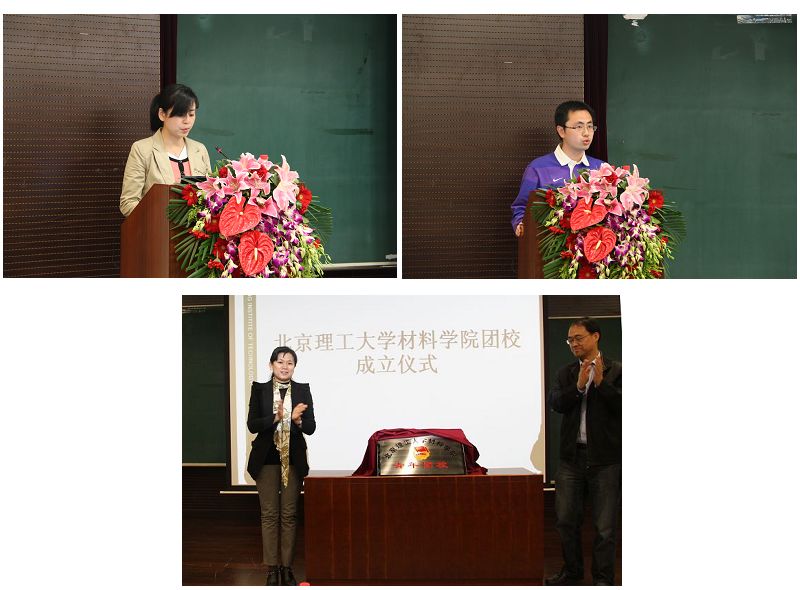 首先,刘艳宣读了关于成立材料学院成立青年团校的相关决议,就团校的宗旨、机构设置、教学形式、学员考核等做了介绍。刘存福和张舰月共同为材料学院青年团校揭牌。学员代表于思琦代表全体学员发言,表示要珍惜培训学习机会,努力提高自身修养,争取成为一名优秀的学生干部。